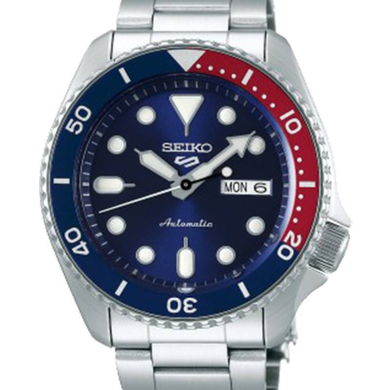 Venez découvrir avec Seiko 5 Sports, maison japonaise, des modèles revisités qui ont déjà eu une forte popularité pendant leur âge d'or au cours des années 1960. A travers ses bijoux, toutes leurs caractéristiques spécifiques ont été gardé et n'a été changé que le design. Sur cette montre Seiko Sports, un boîtier de 42,5mm de diamètre en acier inoxydable prend place. Sur ce dernier se trouve une lunette Pepsi unidirectionnelle qui montrera son utilité lorsque vous irez faire de la natation ou d'autres pratiques aquatiques. A quatre heures par ailleurs se loge la couronne remontoir. Afin de protéger ce boîtier très sobre contre les chocs ou rayures, un verre hardlex va recouvrir ce dernier. Enfin, vous retrouverez un fond de boîtier transparent vissé à travers lequel vous pourrez observer le mécanisme utilisé. C'est une étanchéité de 10 ATM qui est disponible sur ce modèle.