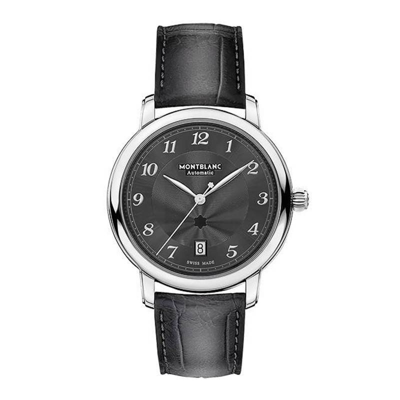 La maison Montblanc est forte d'un savoir-faire indéniable dans le domaine des instruments d'écriture. Cette expertise se prolonge et se diversifie afin de servir avec minutie le secteur de l'horlogerie. Ainsi, la manufacture allemande a su s'approprier les codes horlogers à sa manière et met à l'honneur aujourd'hui l'élégance dans toute sa simplicité. Au sein de la gamme Star Legacy, on retrouve ce modèle Automatic Date doté d'un boîtier en acier inoxydable de 39 millimètres de diamètre pour 9.35 millimètres d'épaisseur. Raffinée dans les moindres détails, cette montre se munit à trois heures d'une couronne boule à la finition cannelée. Cette dernière a pour mission d'ajuster les aiguilles du cadran, tout en vous permettant de remonter manuellement le mécanisme horloger. Le cadran est pour sa part protégé par un précieux verre saphir : un élément synonyme de prestige et de traditions suisses. Le fond assure quant à lui une étanchéité de 3 ATM.