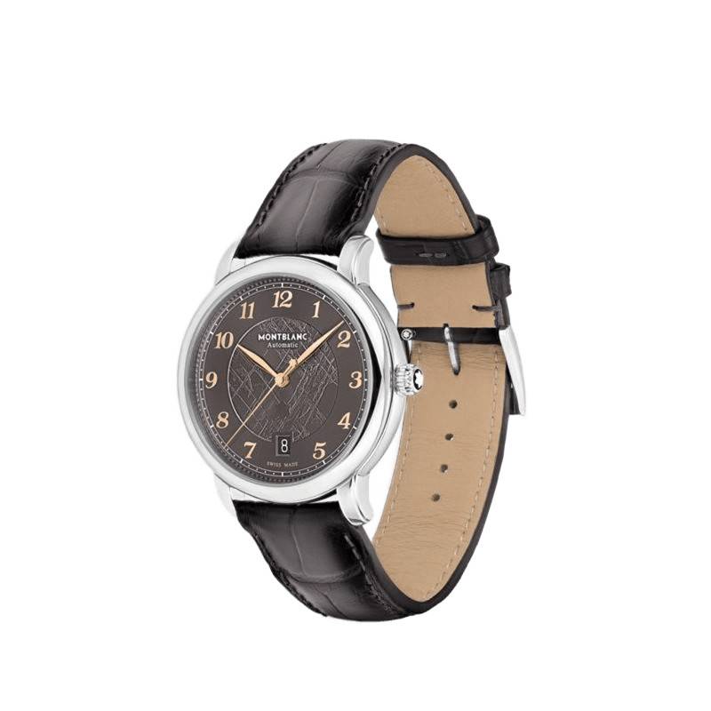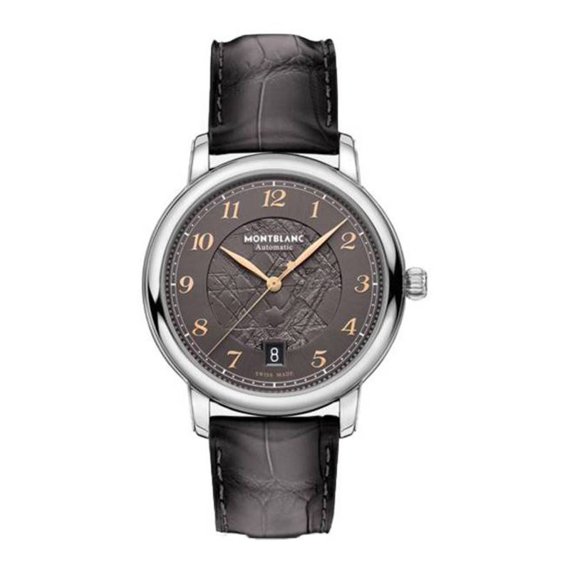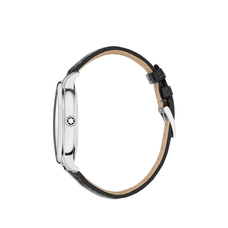 Le cadran gris de cette montre lui confère une élégance et un charme qui sauront vous ravir. De finition double cercle, il s'orne d'un motif glacier et d'indicateurs rose doré pour être du plus bel effet à votre poignet. De fond gris, il présente des éléments raffinés qui permettent une très bonne lisibilité des horaires. Les trois aiguilles qui y prennent place vous indiqueront les heures, les minutes pour les deux en forme de feuille et les secondes par la fine. Celles-ci pointent vers des index en chiffres arabes appliqués placés sur un fond mat pour matérialiser votre affichage analogique. De plus, un chemin de fer des minutes blanc placé sur la bordure du cadran et un guichet date à 6 heures amélioreront la précision du temps. Au-dessus de ce dernier, est apposé l'emblème Montblanc également présent sur le contrepoids de la fine trotteuse des secondes. Le bord inférieur du cadran est paré de la mention “SWISS MADE” et le nom de la maison et le mouvement sont apposés à midi.