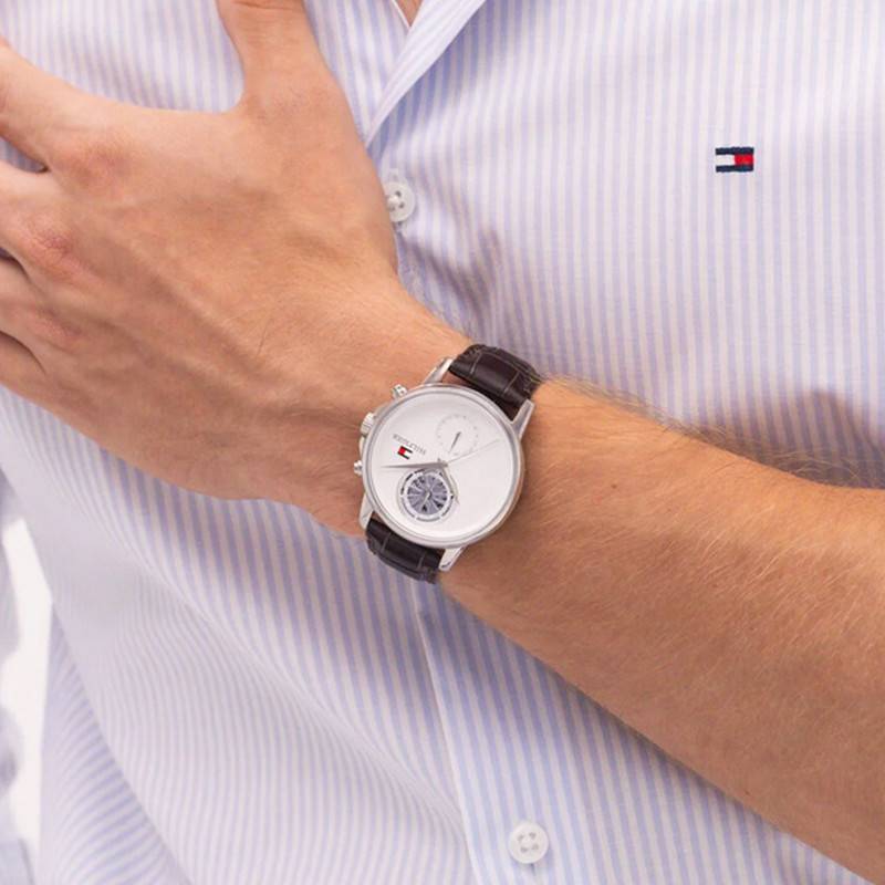 La montre Tommy Hilfiger Stewart est un parfait exemple de l'élégance moderne mêlant technologie de pointe et esthétique raffinée. Son boîtier est fabriqué en acier inoxydable, garantissant une robustesse à toute épreuve complétée par une finition polie brillante qui lui confère un éclat sublime. Avec ses 40 mm de diamètre, son design rond s'adapte à tous les poignets, conviant une présence aussi imposante que discrète. La montre pèse 62 grammes, ce qui assure un port confortable tout au long de la journée. Les boutons poussoirs et le bouton remontoir latéraux ajoutent à la fonctionnalité générale en offrant une prise aisée et intuitive, accentuant l'aspect dynamique de cette montre citadine. Dotée d'un fond de boîte emboité, elle assure une sécurité et une protection optimales contre les éléments extérieurs.