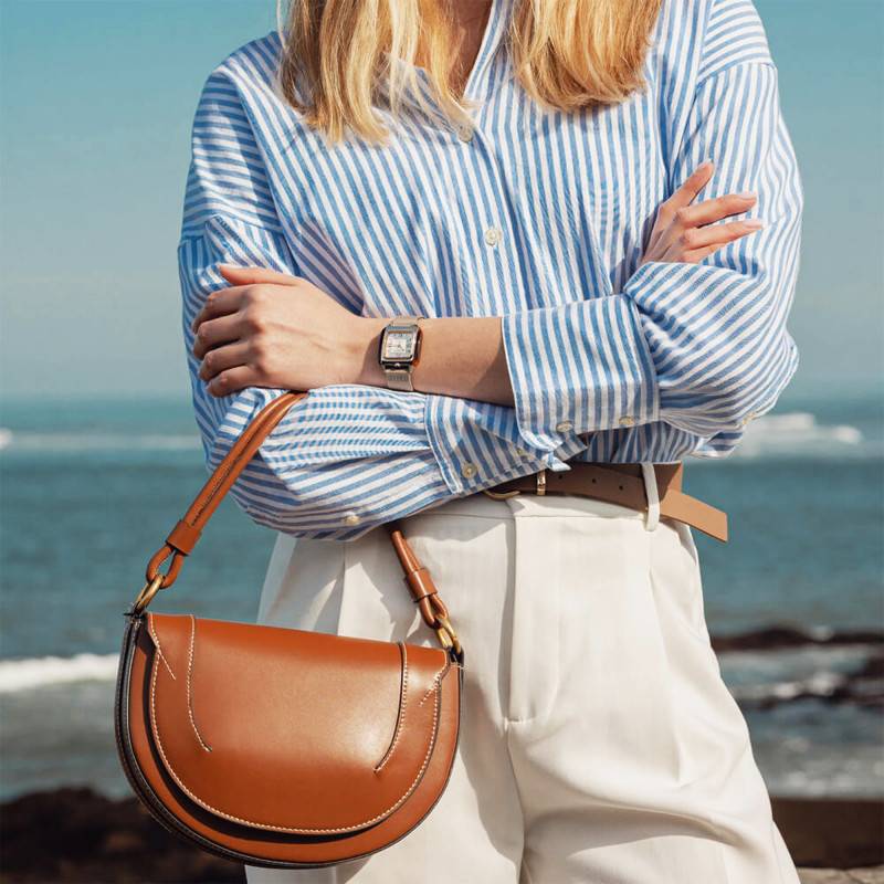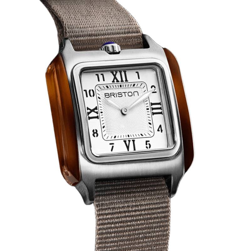La montre Streamliner Kennedy Mid Square de Briston conjugue look rétro et modernité avec son design distinctif. Créée avec une attention méticuleuse aux détails. Le boîtier est fabriqué en acétate de cellulose et acier inoxydable 316L, offrant une finition à la fois brillante et durable. Mesurant 30,00 mm de largeur et de longueur, pour une épaisseur de 8,00 mm, elle maintient un équilibre parfait entre commodité et élégance. La lunette en acier inoxydable garantissant une résistance supérieure aux rayures et à la corrosion. Le fond de la montre est soigneusement vissé pour assurer l'étanchéité jusqu'à 5 ATM, ce qui la rend appropriée pour un usage quotidien et pour les activités aquatiques légères. Avec son allure carrée, cette montre s'illustre dans le champ des garde-temps contemporains tout en respectant les codes classiques de l'horlogerie.