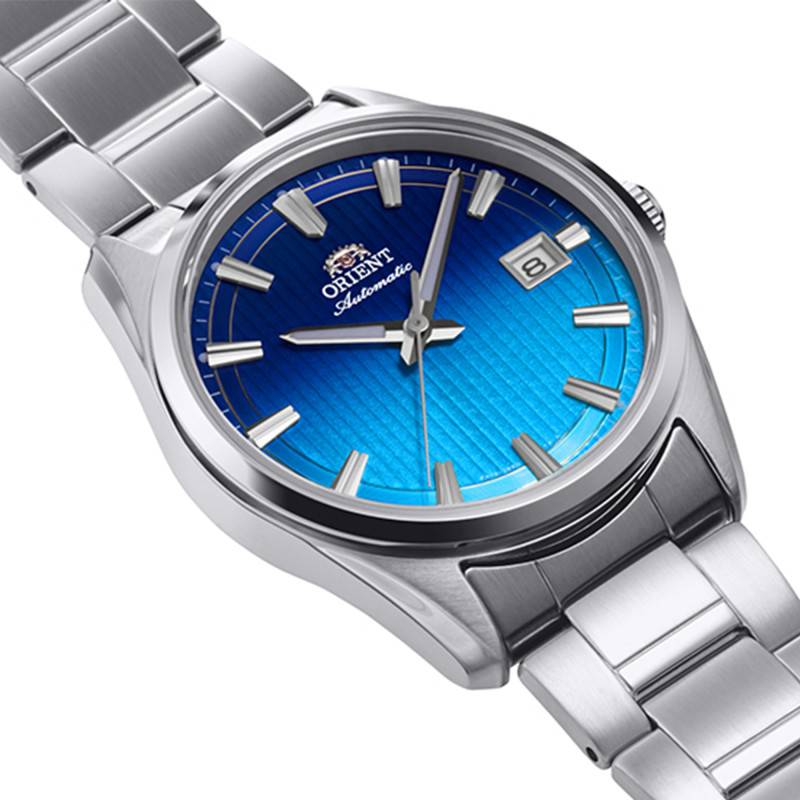 Le cadran est sans conteste le point focal de cette montre avec son dégradé de bleu. Les index bâtons sont soigneusement agencés pour garantir une lisibilité optimale, tandis que le chemin de fer des minutes assure une précision accrue dans la lecture du temps. Les aiguilles arborent également un traitement luminescent, permettant une lecture rapide et facile même dans des conditions de faible luminosité. Un guichet date subtil prend place à 3 heures, complétant ainsi les fonctionnalités indispensables au quotidien.