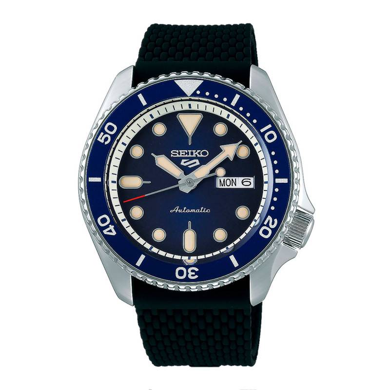 La maison japonaise Seiko vous présente sa nouvelle collection de montres: la Seiko 5 Sports. Avec son design sportif cette montre saura vous interpeller par son authenticité. S'inspirant de la collection précédente Seiko 5 Sportmatic, la Seiko 5 Sports vous emporte dans son univers grâce à un savoir-faire unique. Le modèle Suits SRPD71K2 présente un boîtier en acier inoxydable de 42.5mm avec une épaisseur de 13.4mm. Une lunette uni-directionnelle de couleur bleue entoure la montre, utile pour les amateurs de plongée. Vous trouverez une couronne remontoir à quatre heure avec laquelle vous pourrez régler l'heure à votre guise. Enfin, un verre hardlex protège votre cadran des rayures et dommages potentiels, et le fond de boîtier, transparent, est maintenu par des vis ce qui assurera une étanchéité de 10 ATM.