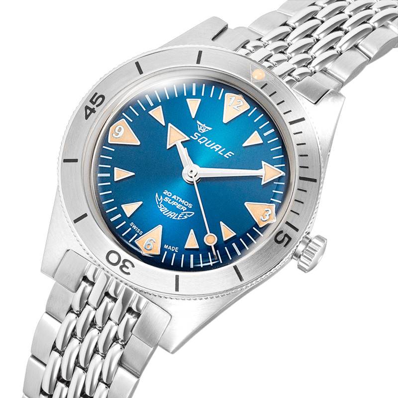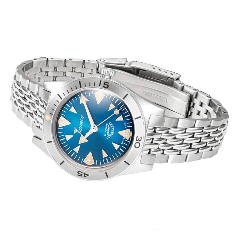 La Montre Super-Squale Big Arrows Blue incarne l'harmonie entre robustesse et design raffiné. Ce garde-temps est conçu pour les hommes exigeants qui recherchent une montre à la fois élégante et fonctionnelle. Son boîtier en acier inoxydable 316L, reconnu pour sa durabilité et sa résistance à la corrosion, arbore une finition brossée qui accentue son allure moderne. Avec un diamètre de 38 mm et une épaisseur de 12 mm, elle s'adapte parfaitement à tous les poignets, offrant un confort sans pareil. Sa fabrication suisse témoigne d'un savoir-faire inégalé, garantissant une qualité irréprochable. Le design rond du boîtier et sa lunette rotative en acier ajoutent une touche classique à ce modèle innovant. Le fond vissé assure une excellente étanchéité, indispensable pour une montre conçue pour les aventures aquatiques.