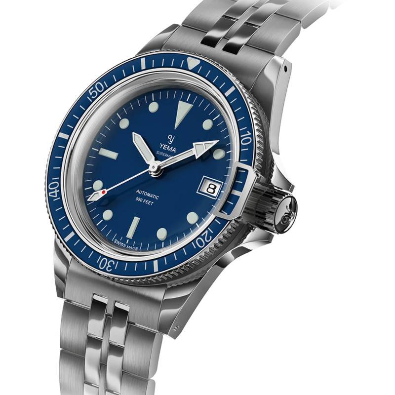 La montre Yema Superman Swiss Edition YSUP25B39-GMS se distingue par son boîtier en acier inoxydable 316L de haute qualité, combinant des finitions brossées et polies qui lui confèrent une apparence éclatante et résistante aux intempéries du quotidien. Avec un diamètre de 39,00 mm ou de 41,00 mm, elle se place confortablement sur le poignet, s'adaptant bien aux poignets des hommes. L'épaisseur du boîtier, précisément 11,30 mm, assure un profil assez fin pour une montre de plongée, ce qui accentue son design moderne et raffiné. Le boîtier est équipé d'une lunette en aluminium uni-directionnelle, essentielle pour la plongée, dotée de marqueurs luminescents pour une lisibilité optimale même dans des conditions de faible luminosité. Le mécanisme breveté du bloc-lunette à 3 heures, conçu pour empêcher toute rotation accidentelle sous l'eau, est l'une des caractéristiques qui distinguent la Superman des autres montres de plongée depuis 1963. La couronne vissée renforce l'étanchéité de la montre, assurant une protection jusqu'à 30 atmosphères, ce qui en fait un choix idéal pour les amateurs de sports nautiques. Cette montre ne manque pas de style en combinant le haut de gamme avec la praticité grâce à son fond vissé sécurisé.