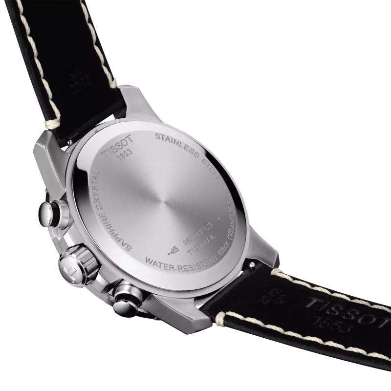 Cette montre est dotée d'un sublime cadran qui soulignera avec élégance l'allure sportive de la montre. La fonction chronographe vous offrira de nombreuses fonctionnalités et sera illustrée par trois compteurs. En effet, le premier compteur situé à deux heures, vous offrira la fonction 1/10 seconde, le compteur placé à six heures vous fournira la fonction petite seconde et le troisième compteur vous donnera la fonction 30 minutes. D'autre part, le cadran accueille au centre, deux aiguilles de couleur grise qui vous indiqueront les heures et les minutes. Leur traitement luminescent vous offrira une meilleure lisibilité de l'heure dans le noir. Quant à l'aiguille rouge, elle représentera le chronographe. Par ailleurs, le cadran se verra accompagné d'index luminescents et d'un chemin de fer des minutes qui vous offriront une meilleure précision. Tissot ajoute un guichet date à six heures afin que vous puissiez garder la notion du temps. Enfin, la marque inscrit son nom à midi et mentionne "Swiss Made" à six heures.