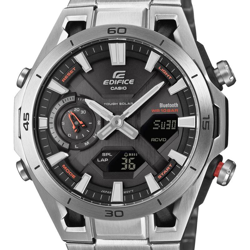 Le cadran de cette Edifice présente un affichage à la fois clair et sophistiqué. Protégé par un verre minéral, il affiche une finition mate qui réduit les reflets indésirables pour une meilleure lisibilité. Le fond du cadran, maintenu par des vis, ajoute une dimension supplémentaire à sa durabilité. À l'intérieur, le design utilise des chiffres arabes et des index luminescents pour marquer les heures, couplés à un chemin de fer des minutes en périphérie. Les aiguilles luminescentes sont de style moderne, permettant une lisibilité parfaite même dans des conditions de faible luminosité grâce au Super Illuminator.