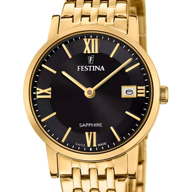 La maison horlogère espagnole Festina élargit sa collection de montres Swiss Made avec le modèle F20021/3. Raffinées et élégantes, ces montres sont connues pour leur design minimaliste qui s'accorde avec toutes les tenues. Destinée aux femmes modernes, cette montre arbore un boîtier rond, mesurant 29,3 millimètres de diamètre, de quoi épouser à merveille les poignets féminins. Conçu en acier inoxydable 316 L revêtu d'un traitement PVD gold, le boîtier résistera à tous vos mouvements au quotidien. Reconnu pour sa grande solidité, un délicat verre saphir vient protéger le cadran des rayures. A 3 heures, vous pourrez régler les aiguilles facilement à l'aide d'une couronne remontoir. Enfin, le fond de boîte emboîté garantit à la montre une étanchéité de 5 ATM, soit 50 mètres de profondeur.