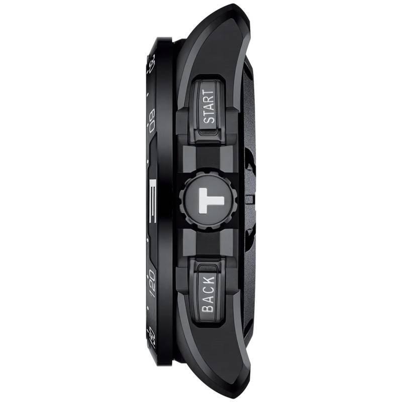 Tissot, maison horlogère d'origine suisse a su démontrer depuis plus de 150 ans son savoir-faire exceptionnel afin de proposer des pièces horlogères de qualité. Plutôt traditionnelle et intemporelle, elle a décidé de moderniser ses gammes en vous proposant une collection de montres connectées. Cette collection accueille une nouvelle montre sportive : la T-Touch Connect Solar. Celle-ci est composée d'un boîtier en titane PVD noir. De forme tonneau et de 47 millimètres de diamètre, il sublimera les poignets masculins avec aplomb. De plus, il est surmonté par une lunette en céramique de la même couleur. Elle vous permettra de vous orienter grâce à sa fonction boussole. Comme le veut la tradition horlogère, vous trouverez une couronne vissée à 3 heures. Elle vous permettra de contrôler les aiguilles, le menu et la fonction rétroéclairage du cadran. Elle est encadrée par deux boutons poussoirs à 2h et 4h. Intitulés "Start" et "Back" il vous offriront la possibilité de contrôler les différentes fonctionnalités, d'enregistrer vos performances et encore de gérer la fonction tactile du cadran. Quant à lui, il est surmonté par un verre saphir tactile au traitement anti-rayures. Robuste et résistant, il le protègera contre les chocs et les rayures du quotidien. Pour finir, cette montre est étanche jusqu'à 10 ATM, soit 100 mètres de profondeur grâce à son fond de boîte maintenu par des vis.