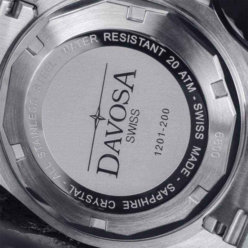 Au cœur de cette montre bat un mouvement automatique suisse, calibre DAV 3021, avec une fréquence de 28,800 A/h (4 Hz). La mécanique automatique, associée à la masse oscillante, assure un fonctionnement précis avec une réserve de marche de 41 heures. Une couronne vissée sécurise l'ajustement du temps et assure l'étanchéité, une caractéristique essentielle pour les amateurs de plongée et de sports nautiques.