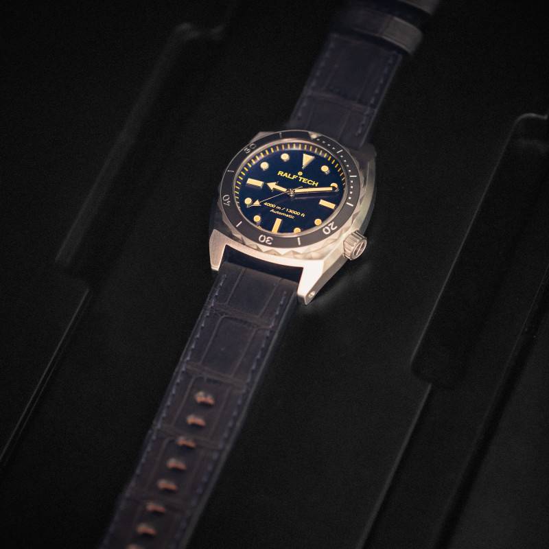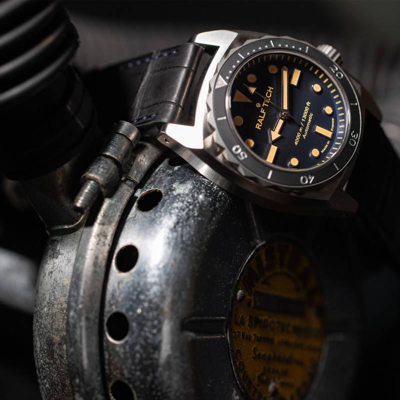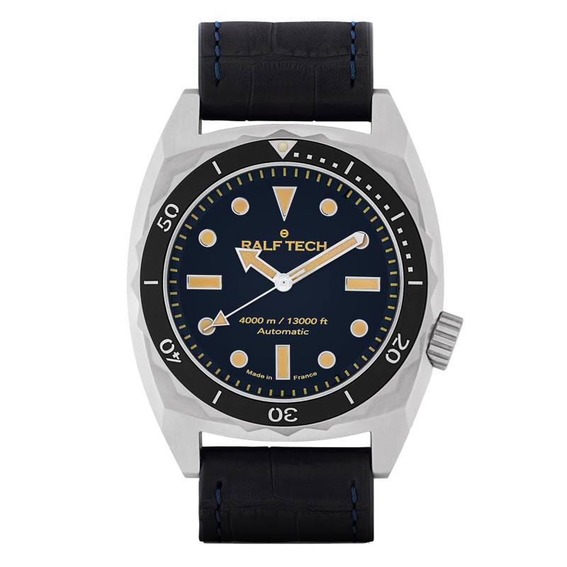 Au cœur de cette montre réside un mouvement automatique RTM001 développé par Ralf Tech, symbole d'une innovation horlogère de haut vol. Ce mouvement français perpétue une tradition d'excellence avec une fréquence de 28.800 A/h (soit 4 Hz), garantissant une précision exceptionnelle. La montre fournit une réserve de marche de 77 heures, vous assurant une performance inégalée même lorsque la montre est laissée au repos. En plus des fonctions de base d'heures, minutes et secondes, ce mouvement représente le summum de l'autonomie et de l'ingéniosité dans le monde des montres sous-marines.