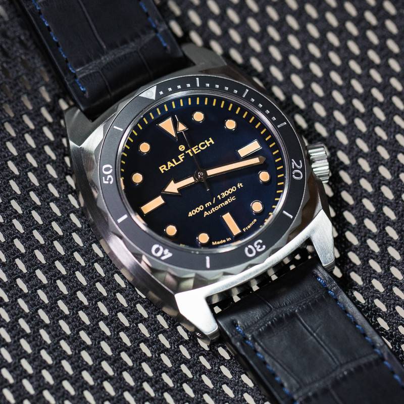 La montre Ralf Tech The Beast Manufacture Automatic "Edition II" se distingue par son design robuste et imposant. Ce garde-temps est conçu pour résister aux conditions les plus extrêmes, affichant une impressionnante profondeur atteinte de -4 000 mètres, ce qui le classe dans le club très exclusif des trois montres ayant plongé ou dépassé la profondeur moyenne des océans à -3 682 mètres. Avec son boîtier de forme tonneau, elle présente un diamètre généreux de 47,70 mm et une épaisseur de 17,00 mm, offrant ainsi une présence indéniable au poignet. Fabriquée en France, cette montre reflète le savoir-faire exceptionnel de Ralf Tech. Le boîtier en acier inoxydable 316L, reconnu pour sa robustesse et sa résistance à la corrosion, arbore une finition mate obtenue par un brossage intensif, ajoutant une touche d'élégance subtile à ce modèle audacieux. De plus, l'association de sa lunette en céramique, rotative et unidirectionnelle, avec des marqueurs luminescents, rend cette montre non seulement visuellement attrayante mais aussi hautement fonctionnelle.