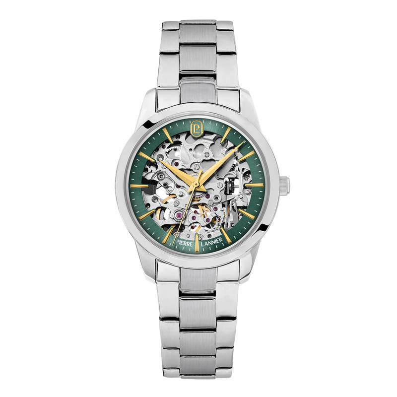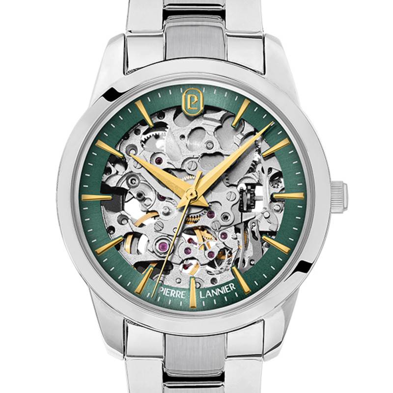 Le cadran de ce garde-temps est sans doute l'une de ses caractéristiques les plus remarquables. Avec une finition squelette, il offre une vue imprenable sur le mécanisme, une danse de rouages visibles qui captivera les passionnés d'horlogerie. Le jeu de couleurs gris et vert imprègne ce cadran unique d'une subtile élégance. Protégeant ce chef-d'œuvre de mécanique subtile, le verre est minéral et plat, assurant une protection fiable contre les rayures tout en permettant une vue dégagée. Les index minutieusement placés et le chemin de fer pour les minutes offrent une lisibilité exemplaire, permettant de lire l'heure d'un simple coup d'œil, grâce au système d'affichage analogique.