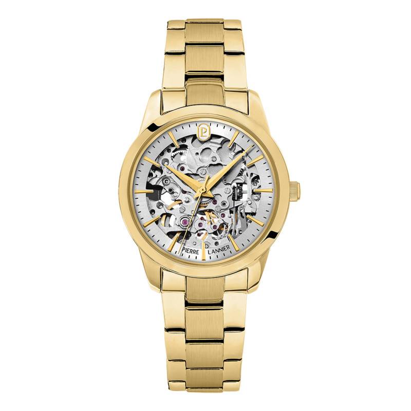 La montre Thea de Pierre Lannier est un garde-temps qui se distingue par son élégance et son design sophistiqué. Son boîtier rond en acier inoxydable, recouvert d'une sublime finition PVD jaune, attire immédiatement l'attention. Son diamètre de 35,50 mm et son épaisseur de 10,60 mm en font un choix adéquat pour une présence à la fois subtile et exigeante. La montre est conçue avec une fabrication française de haute qualité, soutenue par une garantie internationale de 2 ans. Elle affiche un poids de 198,00 g, assurant une présence notable au poignet sans pour autant sacrifier le confort.