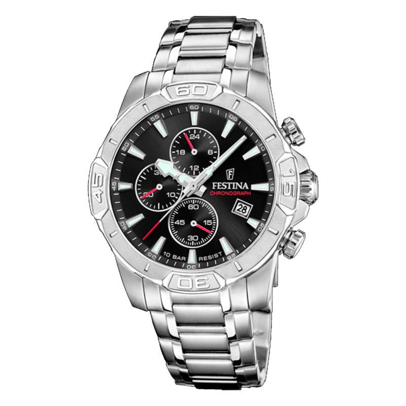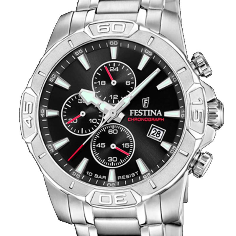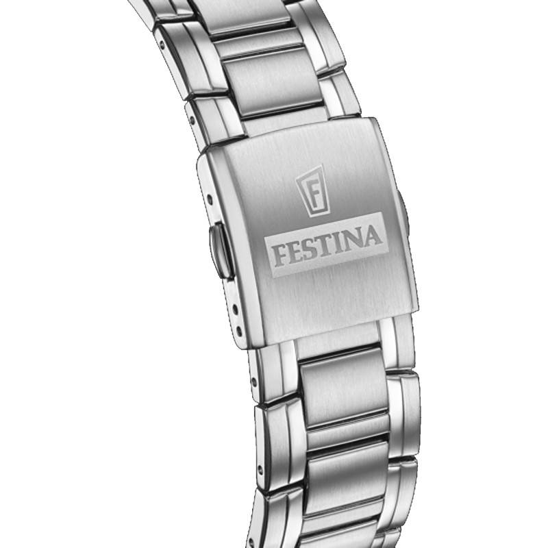 Festina se positionne comme la marque horlogère de référence pour les personnes qui désirent se démarquer avec prestance en toute situation. Ses diverses collections arborent des modèles captivants, déclinés dans des styles classiques, sportifs et urbains. Les garde-temps de Festina sont confectionnés à partir de matériaux modernes et sont reconnus pour leur solidité ainsi que leur durabilité. Cette montre F20704/3 de la collection Timeless Chronograph se révèle être un modèle élégant et polyvalent. Elle affiche un boîtier en acier inoxydable finement poli et brossé, lui conférant une apparence constamment intemporelle. Ce dernier présente une forme ronde de 45 mm de diamètre et 12,25 mm d'épaisseur, parfaitement adaptée aux poignets masculins. Dotée d'un verre minéral et d'une lunette graduée de 0 à 60, cette montre dégage une allure raffinée. Deux boutons-poussoirs ainsi qu'une couronne crantée sont placés sur le flanc droit, facilitant le réglage de ses diverses fonctions. Enfin, le fond de boîte vissé assure une étanchéité de 10 atmosphères, soit 100 mètres.