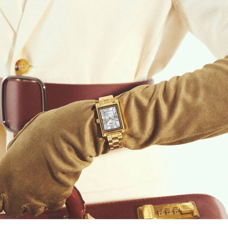 Le bracelet de la montre est tout aussi impressionnant que son boîtier. Fabriqué en acier inoxydable avec un revêtement PVD Gold, il irradie un ton jaune éclatant et raffiné. La finition polie de ce bracelet confère une sensation de luxe, tout en garantissant un confort optimal au poignet. La boucle déployante triple assure une fermeture sécurisée et ajoute un élément pratique à cette pièce sophistiquée.