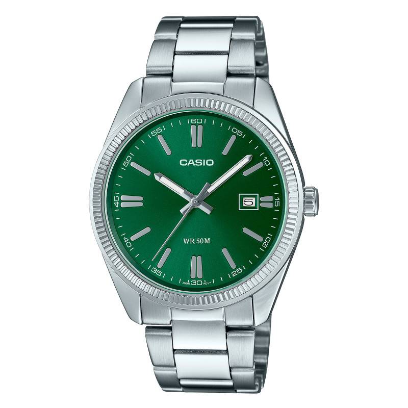 La montre Casio Timeless MTP-1302PD-3AVEF incarne une élégance masculine intemporelle avec son boîtier rond en métaux divers de 38,50 mm de diamètre et une épaisseur de 9,20 mm. Le boîtier, d'un poids de 105 g, est rehaussé par une lunette cannelée, ajoutant une touche subtile mais sophistiquée. Recouvert d'un placage ionique, il offre une allure aussi polie qu'éclatante.