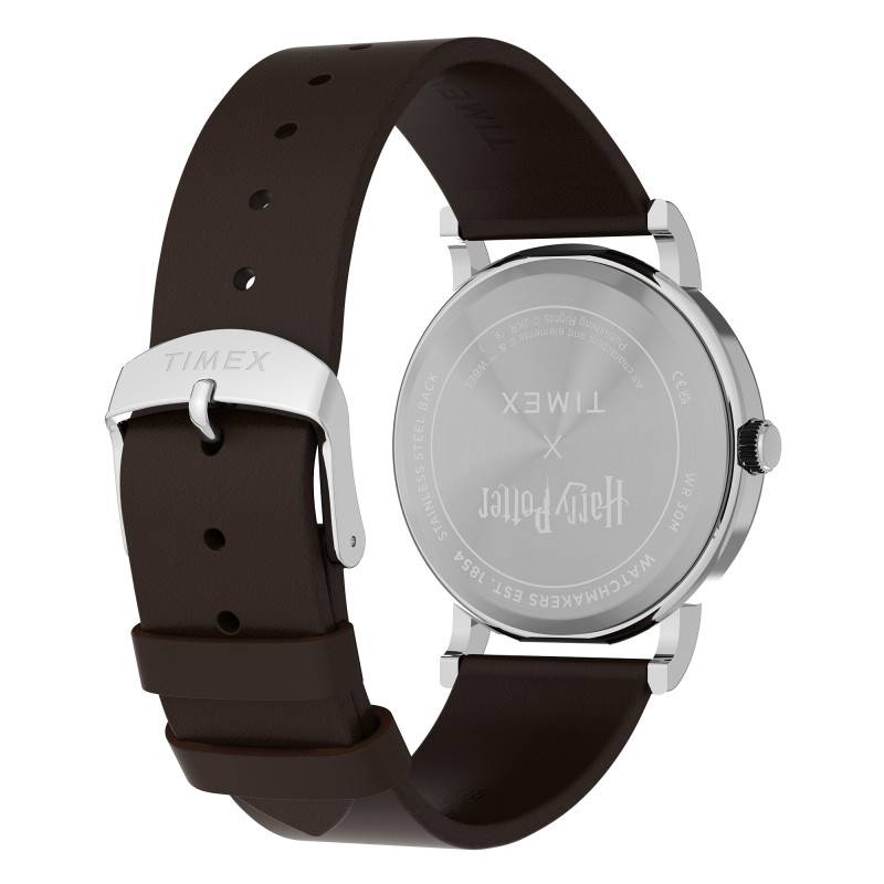 Le bracelet est conçu en cuir de bovin, assurant un confort optimal associé à une robustesse durable. Sa teinte marron et sa finition mate apportent une touche finale raffinée qui complète harmonieusement le boîtier. Ce bracelet se distingue par une largeur d'entrecorne de 20 mm, parfaite pour s'adapter à tous vos mouvements avec confort. Le fermoir de type boucle ardillon est pratique et sûr, assurant que la montre reste parfaitement en place. Chaque détail jusqu'au motif en relief du Chapeau de Sélection sur le cuir est intégré, rendant hommage subtilement à Harry Potter.