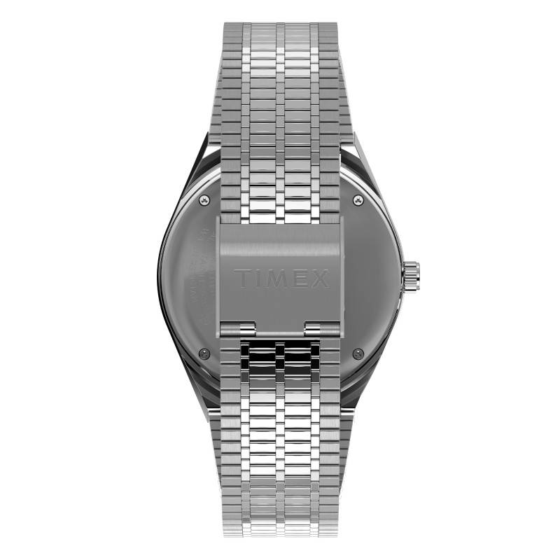 La montre Timex x Seconde/seconde se distingue par sa structure tonneau, une forme qui évoque à la fois la robustesse et le style intemporel. Fabriqué à partir d'acier inoxydable brossé et poli, son boîtier de 38,00 mm de diamètre et 11,50 mm d'épaisseur offre une résistance impressionnante tout en garantissant un look sophistiqué. La lunette en aluminium rotative offre à cet ensemble une touche de dynamisme et de fonctionnalité.