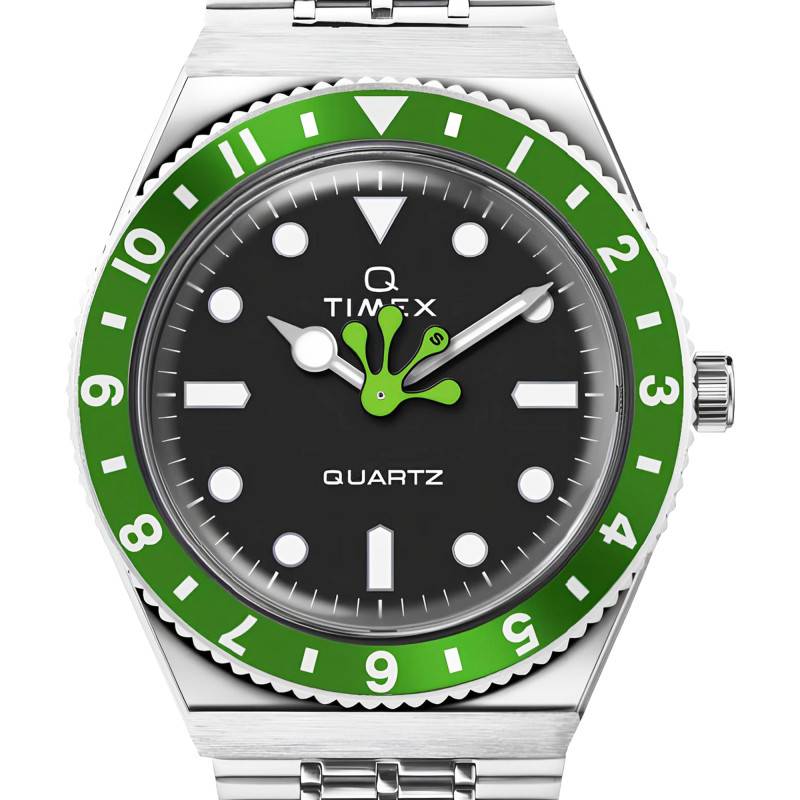 Cette montre fait partie d'une collaboration remarquable entre Timex et Seconde/seconde qui réinvente les classiques avec une touche moderne et audacieuse. Le boîtier, en forme de tonneau, est conçu en acier inoxydable, offrant à la pièce une solidité et une élégance indéniables grâce à ses finitions brossées et polies. Sa dimension de 38,00 mm de diamètre et son épaisseur de 11,50 mm s'adaptent parfaitement à tous les poignets, assurant un confort maximal. Le design général de cette montre est rehaussé par une lunette rotative en aluminium de couleur verte, ornée de chiffres arabes blancs, ajoutant une note de dynamisme à cet accessoire intemporel.