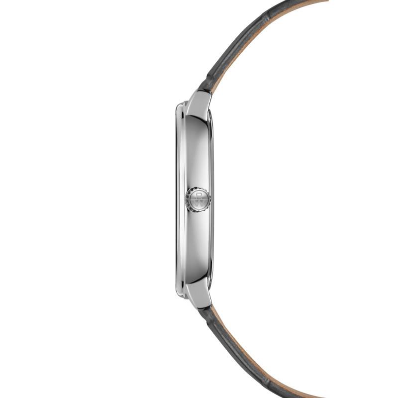 Le bracelet en cuir de veau de la montre Toccata est travaillé avec un soin particulier, revêtant un motif alligator d'un élégant gris qui complète parfaitement le style global de ce modèle. Doté d'une boucle ardillon, ce bracelet garantit une fermeture sécurisée tout en permettant un ajustement facile et intuitif au poignet.