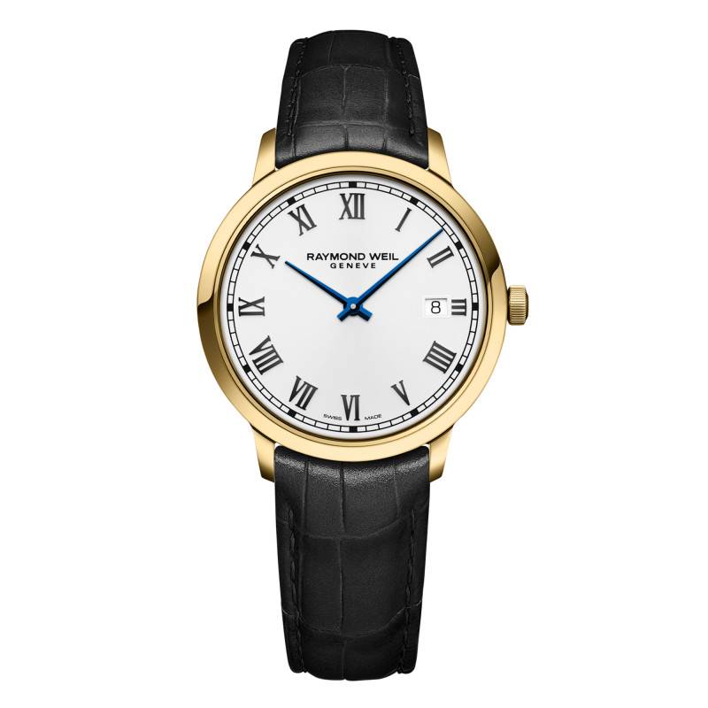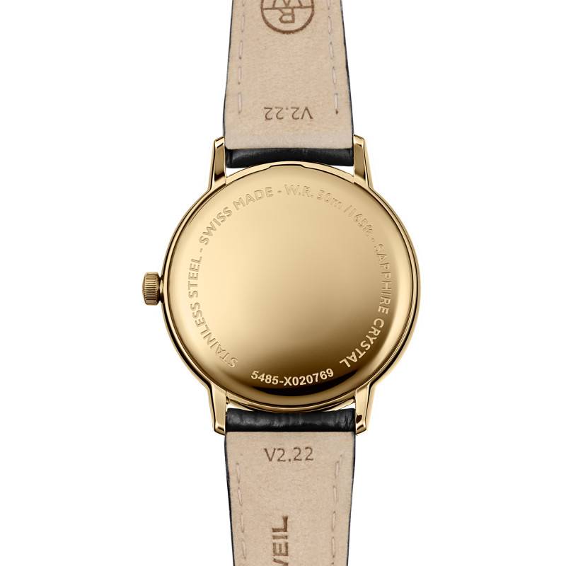 La montre Toccata Classic 39mm de Raymond Weil incarne l'élégance et la sophistication à l'état pur. Avec un boîtier rond en acier inoxydable de 39 mm de diamètre, elle propose une finition PVD couleur jaune hautement raffinée et un aspect brillant qui capture subtilement la lumière. Sa légèreté, favorisée par une épaisseur de 7,90 mm, en fait un garde-temps idéal pour le confort au quotidien. Le fond de boîte est emboîté, une caractéristique qui ajoute une dimension de sobriété tout en maintenant la structure typiquement suisse de la montre. Protégée par un verre saphir, la montre est résistante aux rayures, garantissant ainsi sa durabilité et sa clarté de lecture éternelle.