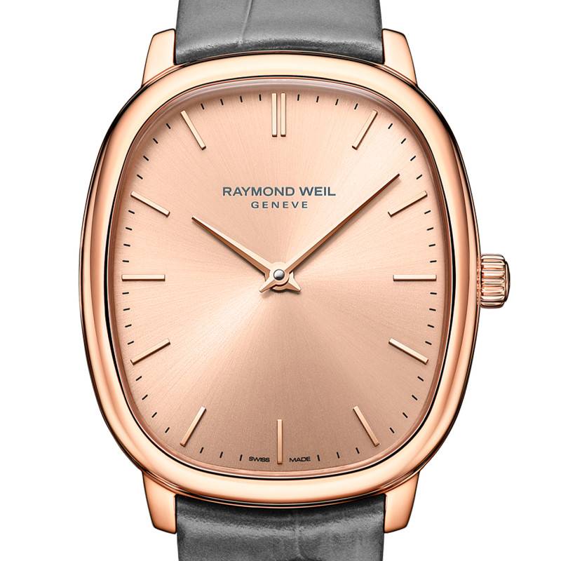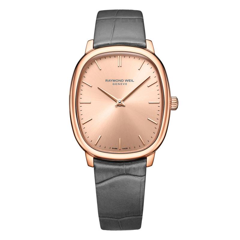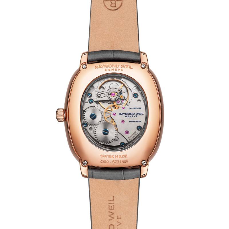 La montre Raymond Weil Toccata Heritage est une création raffinée qui marie habilement tradition et modernité. Avec ses dimensions de 38 x 33 mm, le boîtier oblongue se distingue par sa finition en acier inoxydable poli, sublimée d'un revêtement PVD or rose. Cette pièce horlogère incarne la quintessence du savoir-faire suisse, mettant en avant un style à la fois classique et contemporain. La profondeur et la pureté de ses lignes témoignent d'une conception minutieuse, accentuée par un fond de boîte transparent en verre saphir qui révèle le cœur mécanique de l'œuvre.