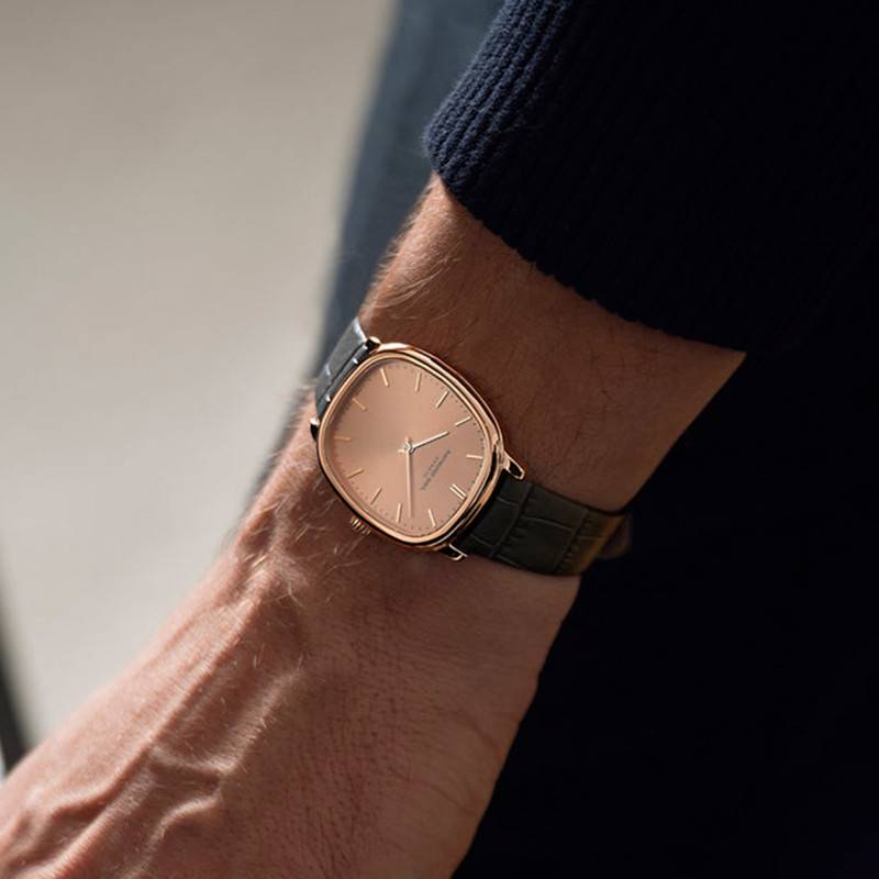 Le cadran de cette montre est un chef-d'œuvre d'élégance. Affichant une finition soleillée sur une base cuivrée, il capture la lumière dans un jeu subtil de reflets. Les aiguilles dauphine polies dansent avec précision autour d'index appliqués sophistiqués. Un chemin de fer des minutes, discret mais présent, ajoute une note de précision classique à cet agencement. Le tout est sublimé par un verre saphir plat avec traitement antireflets, garantissant une lisibilité optimale quelles que soient les conditions d'éclairage.