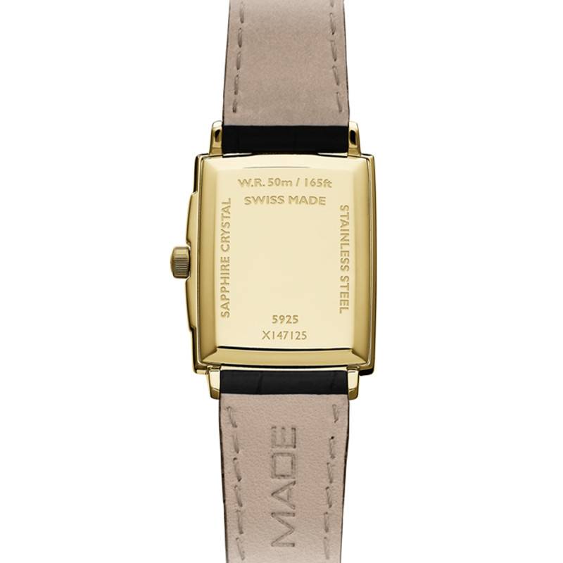 Cette montre est animée par un mouvement quartz suisse, symbole de précision et de fiabilité sans faille. Le mécanisme garantit un affichage parfait des heures et des minutes, en plus de la fonction date. Le mouvement quartz combine l'élégance du style analogique avec la modernité de la technologie suisse, gage de performance durable et d'entretien minimal, répondant aux attentes les plus exigeantes.