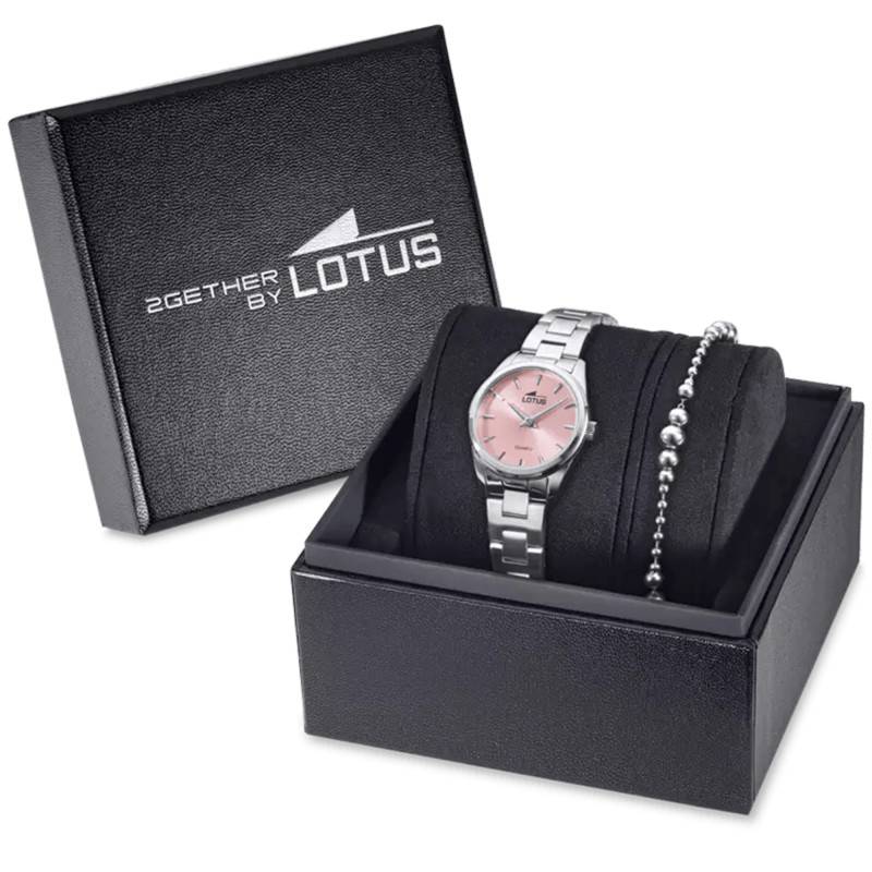 La montre présentée ici est une création de la célèbre marque Lotus, un nom synonyme d'élégance et de performance dans le monde de l'horlogerie. Conçue pour les femmes, cette montre se distingue par un boîtier rond en acier inoxydable, offrant une impression de solidité et de raffinement. Avec un diamètre de 26,00 mm et une épaisseur de 7,15 mm, elle s'adapte parfaitement à un poignet féminin, alliant confort et style. Le poids du boîtier, de 50,00 g, garantit un port agréable, idéal pour un usage quotidien sans alourdir le poignet. La finition polie/brillante de l'acier lui confère une brillance délicate qui capte la lumière sous tous les angles. De plus, un bracelet en acier vous est offert avec la montre pour s'assortir avec cette dernière sur votre poignet.