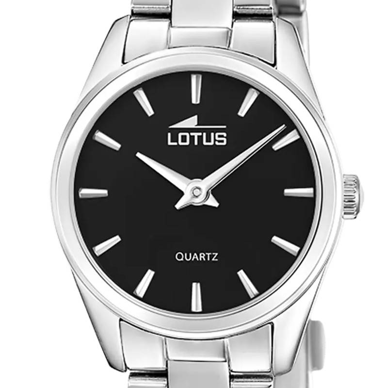 Le cadran de la montre Lotus Together enchante par sa couleur noire matte, une toile parfaite pour ses aiguilles argentées qui se déplacent avec précision pour indiquer les heures et minutes. La sobriété du fond noir met en valeur la lisibilité et offre un contraste élégant. La composition du cadran assure une lisibilité parfaite quelles que soient les conditions d'éclairage.