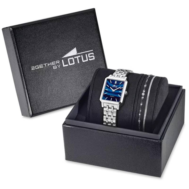 La montre Lotus Together incarne un design élégant pensé pour la femme moderne. Son boîtier rectangulaire en acier inoxydable confère une allure contemporaine et robuste à ce garde-temps exceptionnel. Avec un diamètre de 22 mm et une épaisseur de 7,05 mm, elle repose confortablement sur le poignet, tandis que son poids de 55 g assure une présence subtile mais affirmée. Un verre minéral protège le cadran, combinant résistance et clarté de vision.