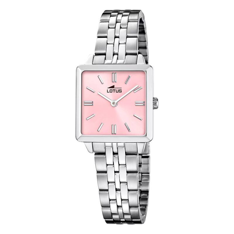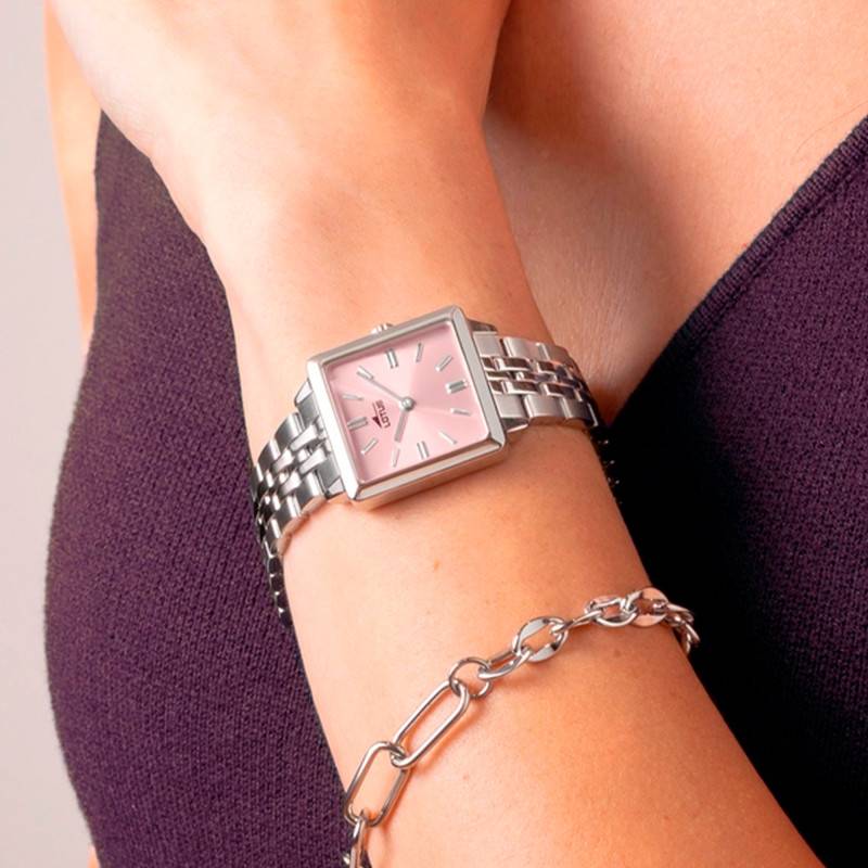 La montre Lotus 2Gether 19010/2 se distingue par son style éminemment féminin et sa robustesse grâce à son boîtier carré en acier inoxydable. Ce boîtier de 26 mm de diamètre et pesant 62 grammes offre une sensation de solidité tout en garantissant une esthétique élégante. Sa finition polie sublime l'ensemble, rendant la montre idéale pour des occasions spéciales comme un usage quotidien. La montre est livrée dans un coffret cadeau avec un bracelet assorti, renforçant son attrait comme idée de cadeau prestigieux et attentionné.