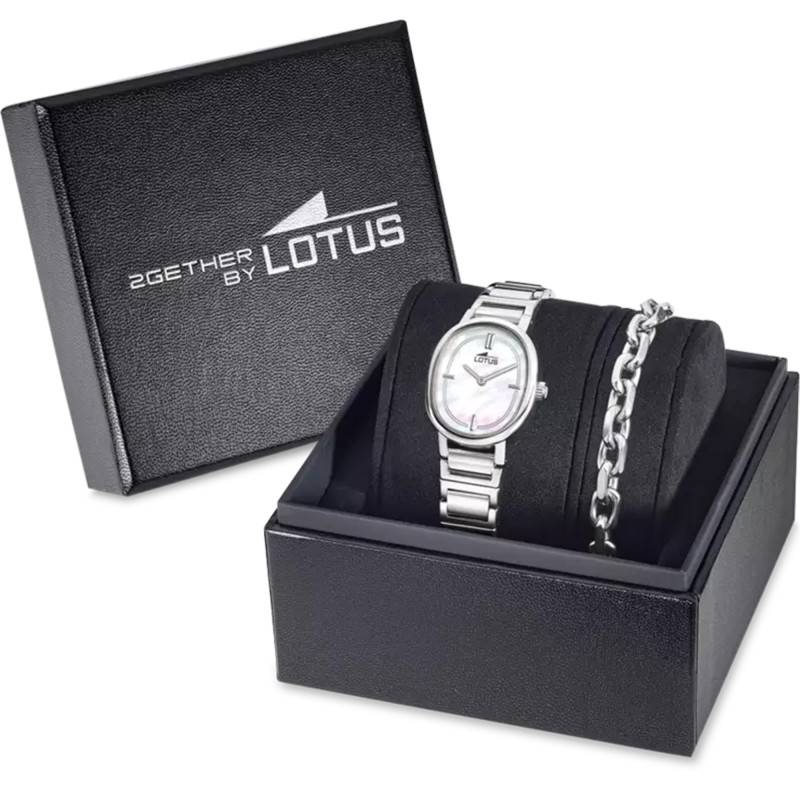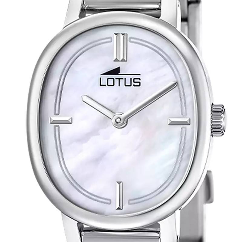 La montre Lotus Together fascine par ses lignes élégantes et raffinées. Conçu en acier inoxydable, le boîtier ovale présente une finition polie et brillante qui brille d'une allure intemporelle. Avec un diamètre de 25,70 mm, ce garde-temps est parfaitement dimensionné pour épouser délicatement le poignet tout en pesant seulement 53 g, offrant un confort luxueux à celles qui la portent. Le verre minéral plat protège précieusement le cadran contre les éléments extérieurs, témoignage de la qualité irréprochable de ce modèle. Un bracelet bijou est offert en complément de la montre.