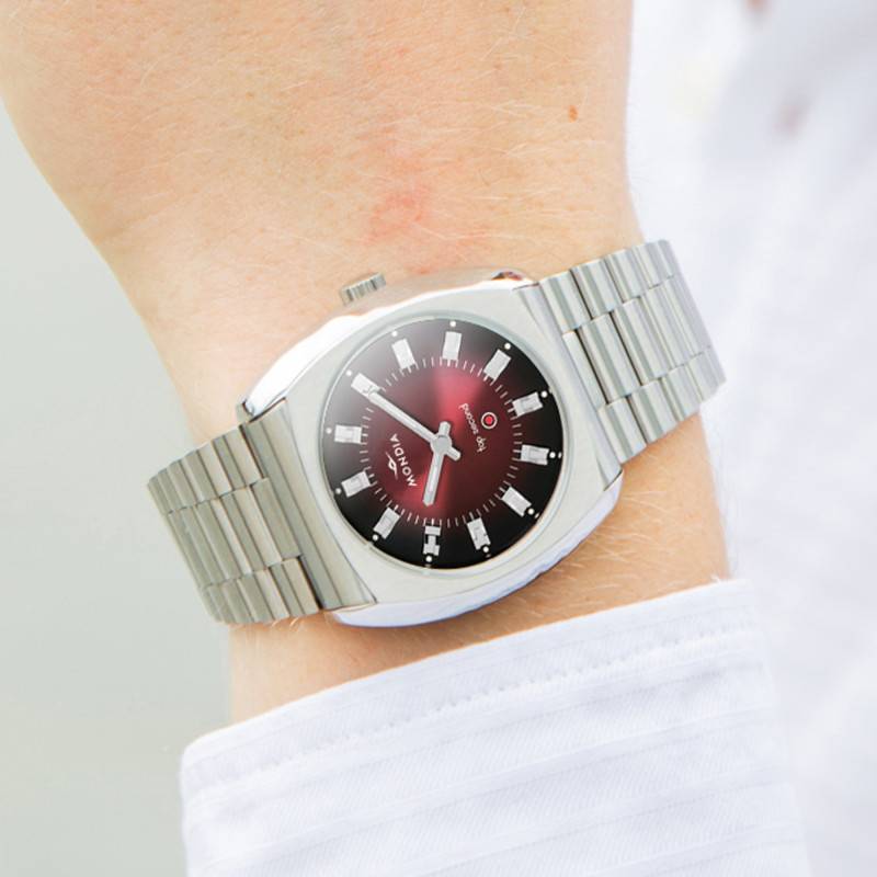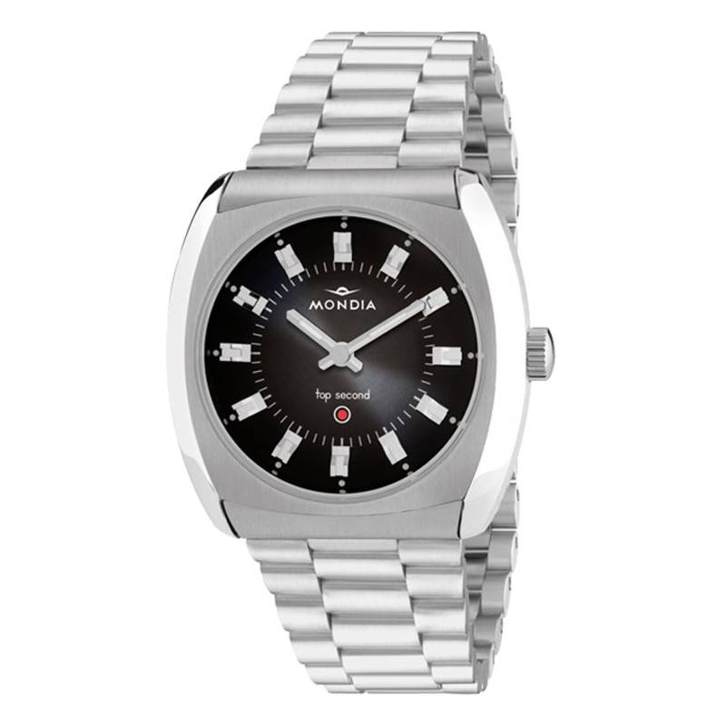 Qualité, passion, créativité sont les clés du succès de la marque Mondia depuis 1935. En constante innovation, elle n'a de cesse de concevoir des montres aux designs fins et originaux qui s'inscrivent dans l'air du temps. Aujourd'hui, son savoir-faire est mis à l'honneur à travers cette magnifique évolution moderne du modèle emblématique de 1972. Il s'agit du Top Second MH-004-SS-BK-CM, un modèle à la fois urbain et sophistiqué, parfait pour accessoiriser chacun de vos looks. Son boîtier de forme coussin est fabriqué en acier inoxydable 316L poli et brossé. Il mesure 37,50 mm de largeur pour une longueur de 38 mm et une épaisseur de 13 mm. Parfait pour les poignets masculins, il soulignera votre personnalité et ajoutera de l'authenticité à vos styles. Son cadran accueille un verre saphir incurvé qui le protège des chocs et des dommages quotidiens. Son traitement antireflet offre une lisibilité optimale des indicateurs centraux. Ces derniers sont réglés par la couronne crantée à 3 heures. Pour finir, le fond de boite vissé assure une étanchéité de 5 ATM.