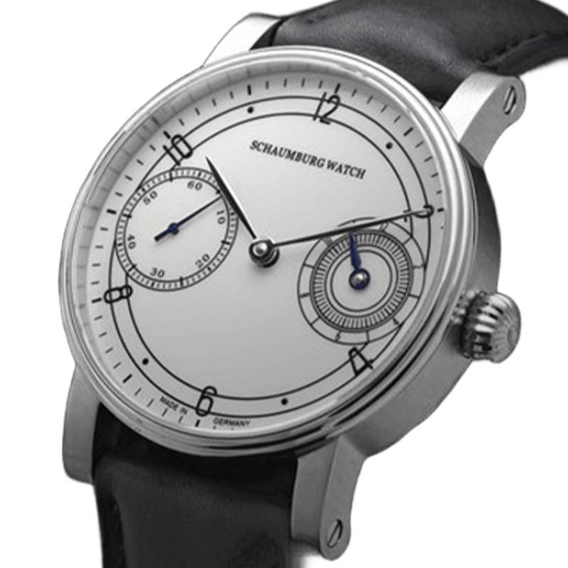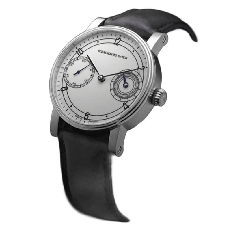 La manufacture horlogère Schaumburg Watches est une maison historique allemande qui créé ses propres mouvements mécaniques. Qualité, savoir-faire et précision sont au coeur du processus de fabrication. La maison choisit également un design unique et élégant. Le garde-temps Traveller 40's GMT vous propose un véritable voyage dans le temps, grâce à sa fonction double fuseau horaire GMT. Ce dernier possède un boîtier de 42mm de diamètre en acier brossé et poli. Le verre saphir protège le cadran lumineux. A trois heures, une couronne argentée à manipuler vous permettra de remettre les aiguilles à l'heure. Le fond de boîte vissé transparent est décoré de motifs guillochés faits artisanalement. L'étanchéité de cette montre est par ailleurs de 5 bar.