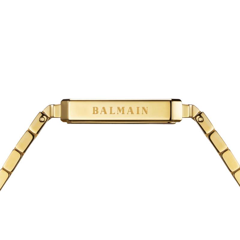 Balmain a accompagné cette belle montre d'un bracelet en acier inoxydable doré. Il se compose de cinq rangées de maillons traités au PVD jaune et renforce l'élégance de la création. Chacun de ses brins mesure 81 mm et il conviendra aux tailles de poignet de 129 et 190 mm. Sa boucle déployante papillon avec boutons-poussoir de 16 mm de largeur vous permet un maintien solide.