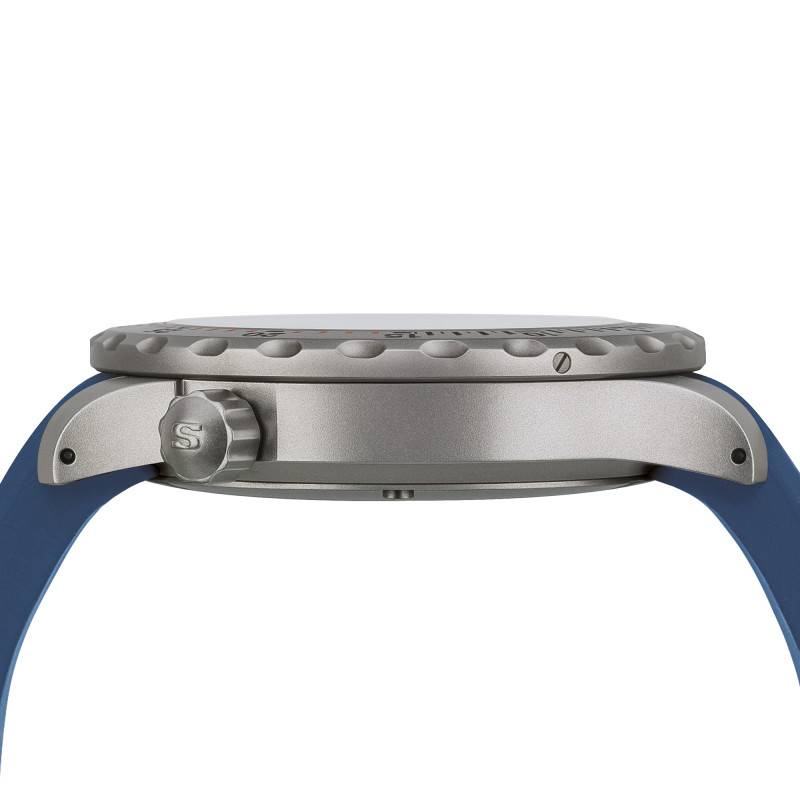 La montre se distingue également par la diversité des options de bracelet. Trois choix s'offrent à vous : un bracelet silicone bleu, idéal pour l'immersion en eau, un bracelet en acier inoxydable gris qui renforce la robustesse et l'élégance de la montre, et enfin un bracelet textile bleu qui apporte une touche sportive et moderne. Le système de fermoir, boucle déployante, garantit une sécurité sans faille tout en conservant un ajustement confortable. L'entrecorne standard de 20 mm assure une compatibilité parfaite avec chaque option de bracelet, garantissant ainsi polyvalence et confort pour toute occasion.