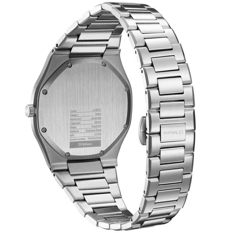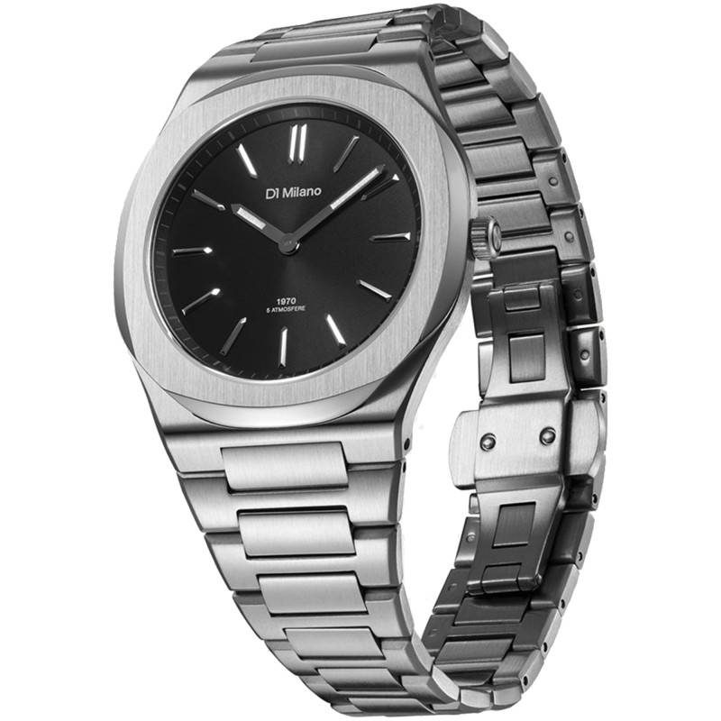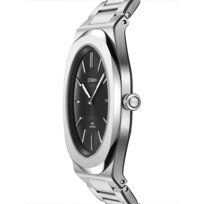 Cette montre D1 Milano Ultra Thin Groovy Black incarne parfaitement l'élégance contemporaine avec son design épuré et sa construction robuste. Fabriquée en acier inoxydable 316L, elle offre une résistance exceptionnelle à la corrosion, garantissant sa durabilité et son attrait à long terme. Le boîtier octogonal au diamètre de 39 mm et au poids de 104 g confère un équilibre parfait entre discrétion et présence, adapté à toutes les occasions, qu'elles soient formelles ou décontractées.