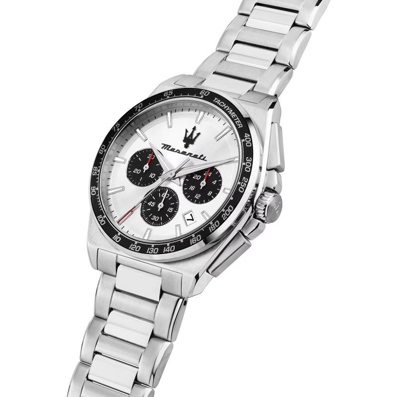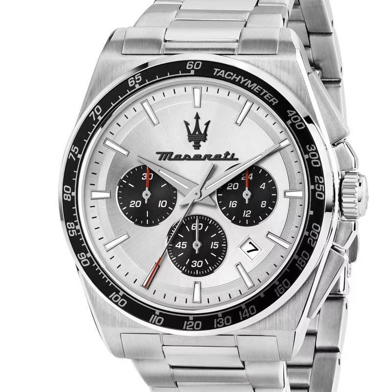 La montre Maserati Velocità, un nom qui évoque la vitesse et l'élégance, est un garde-temps conçu pour les amateurs de sensations fortes et de performances techniques. Le boîtier, d'une forme ronde faite avec un alliage d'acier brossé et poli, assure une robustesse irréprochable tout en affichant un éclat brillant. Avec des dimensions généreuses de 43,00 mm et une épaisseur de 11,90 mm, ce garde-temps s'affirme clairement sur le poignet des personnes qui apprécient à la fois la fiabilité et l'esthétique. La montre arbore un fond de boîte vissé, garantissant ainsi longévité et résistance à l'eau, là où d'autres fondations seraient plus vulnérables. La lunette tachymétrique, quant à elle, apporte une fonctionnalité supplémentaire en permettant de calculer des vitesses moyennes, un atout inestimable pour les fans de courses automobiles. Le choix d'un verre minéral plat assure une bonne protection contre les chocs et rayures accidentels, offrant une visibilité claire du cadran à tout moment.