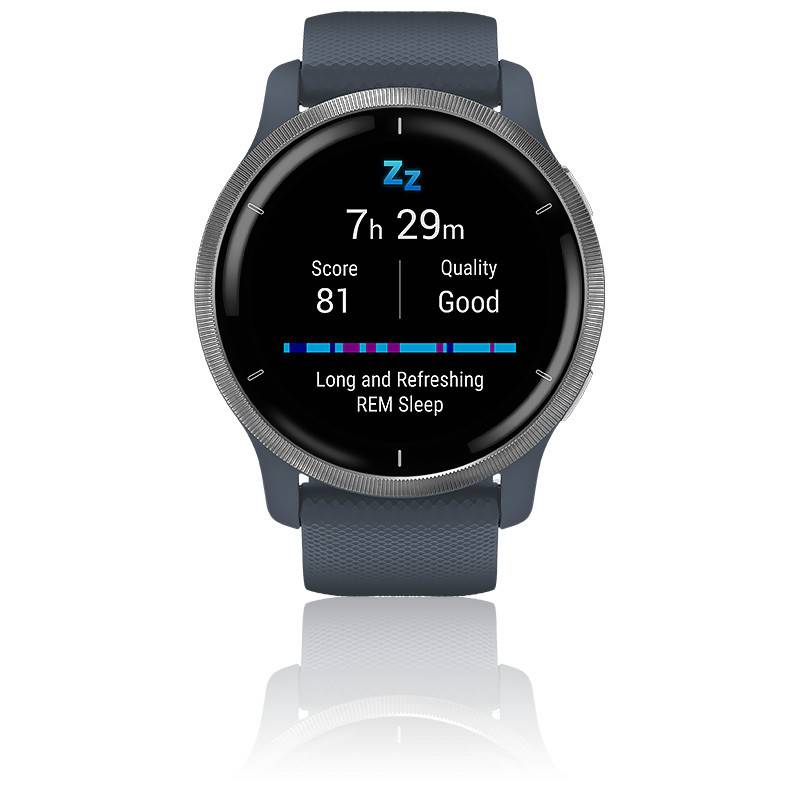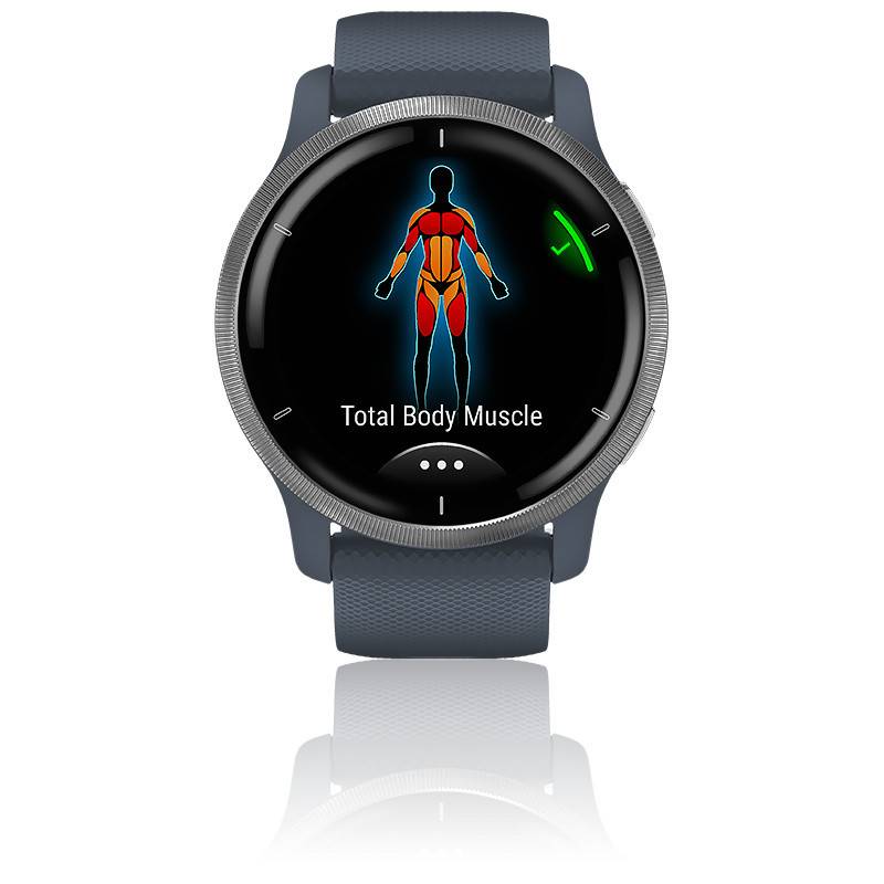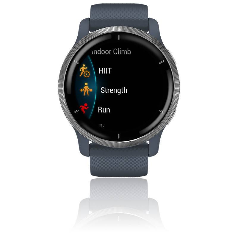De forme ronde, il s'agit ici d'un écran tactile AMOLED, de 1.3 pouces et de résolution 416 x 416 pixels, qui vous permettra d'accéder aux nombreuses fonctionnalités offertes par la Venu 2 Silver 010-02430-10. Afin de faciliter votre prise en main, l'écran peut être affiché en permanence si vous le souhaitez. De plus, l'atout de ces montres connectées et intelligentes est que vous avez la possibilité de personnaliser votre interface selon vos envies, vos objectifs, vos préférences. Ainsi, chacun aura une montre qui lui ressemble ! Vous aurez par exemple la possibilité de choisir entre un affichage analogique ou un affichage digital.
