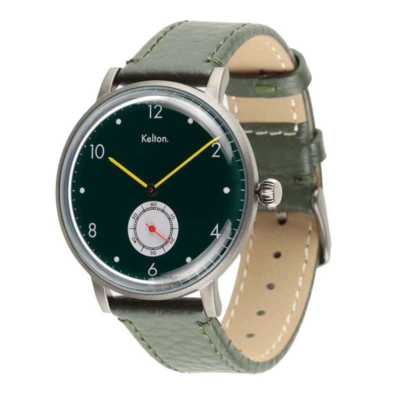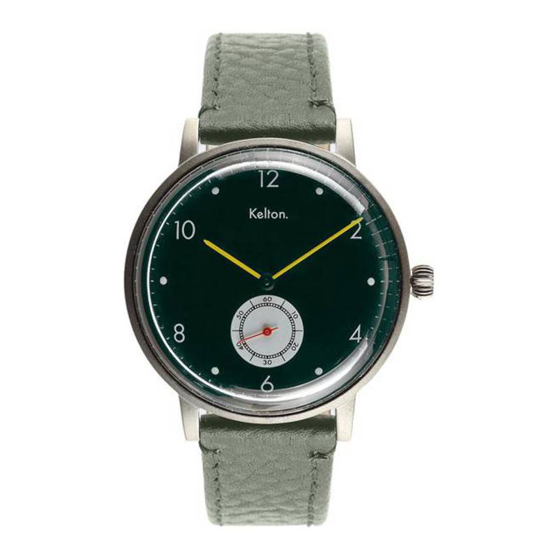 Connue depuis 70 ans, la marque Kelton détient un savoir-faire remarquable en ce qui concerne la fabrication des montres. Elle est présente sur tout le territoire français grâce à ses montres au design sophistiqué et accessibles à tous. La marque nous présente dans sa Collection Villa, ce garde-temps de couleur verte. Cette montre arbore un boîtier sablé et argenté d'un diamètre de 38 millimètres. Il dispose à sa droite, plus précisément à 3 heures, d'une couronne crantée en forme de type "poire" dédiée au réglage des aiguilles de la montre. Ce dernier est surplombé d'un verre minéral bombé qui recouvre le cadran. Le fond emboîté de ce garde-temps lui procure une étanchéité de 3 ATM.