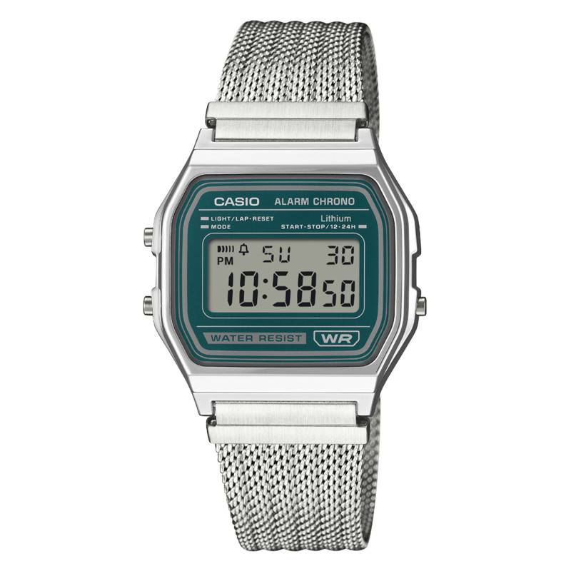 Le cadran de cette montre est un modèle de simplicité et de fonctionnalité. Avec sa couleur verte, il confère à l'ensemble une touche d'originalité tout en préservant l'identité résolument vintage de l'objet. L'affichage LED numérique rend la lecture de l'heure et d'autres informations aussi pratique que possible, que ce soit en pleine lumière ou dans l'obscurité. Ce cadran fournit des informations complètes, incluant l'affichage de la date, du jour, des heures, des minutes, et des secondes. De plus, le format de l'heure est flexible avec une option 12/24 heures, répondant aux préférences individuelles de chaque utilisateur.