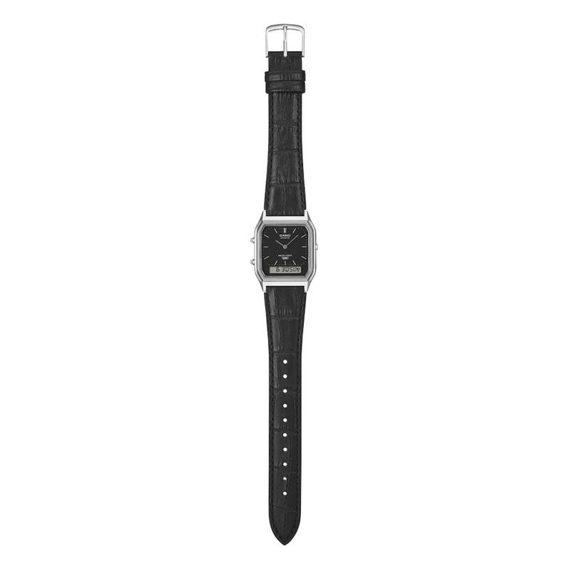 La montre Casio Vintage AQ-230EL-1AEF présente un parfait équilibre entre élégance rétro et fonctionnalité contemporaine. Son boîtier carré en résine de finition polie et brillante témoigne d'une conception axée sur la durabilité tout en offrant une allure séduisante. Pesant seulement 20,40 grammes, elle s'ajuste parfaitement au poignet sans compromettre le confort. Mesurant 29,80 mm de diamètre, 38,80 mm de long et d'une épaisseur minime de 8,10 mm, elle devient une extension naturelle et discrète de vous-même. L'éclat lumineux du verre acrylique plat repose en harmonie sur le boîtier, ajoutant une touche de clarté à l'ensemble.