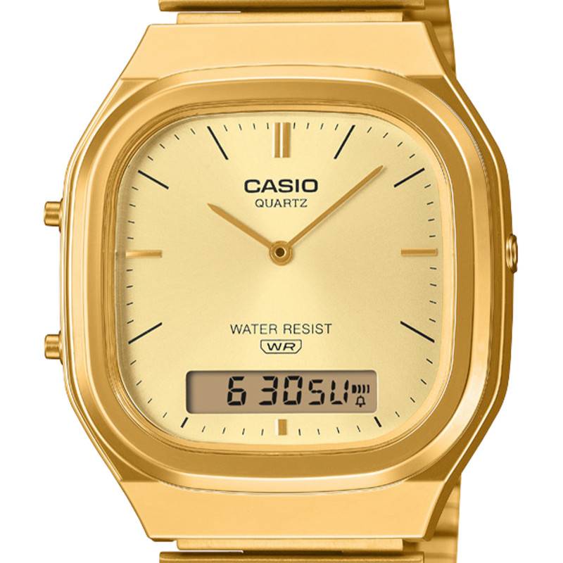 Cette montre Casio Vintage AQ-240EG-9AEF est un hommage aux designs classiques, offrant une esthétique rétro qui séduit tant par son charme intemporel que par ses fonctionnalités modernes. Le boîtier carré de cette montre, fabriqué en résine de qualité, assure légèreté et robustesse, pesant seulement 51 grammes pour un confort optimal au poignet. Mesurant 41 mm de longueur sur 35 mm de diamètre, avec une épaisseur de 8,10 mm, elle est à la fois discrète et élégante, convenant à toutes les occasions.