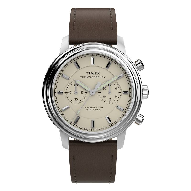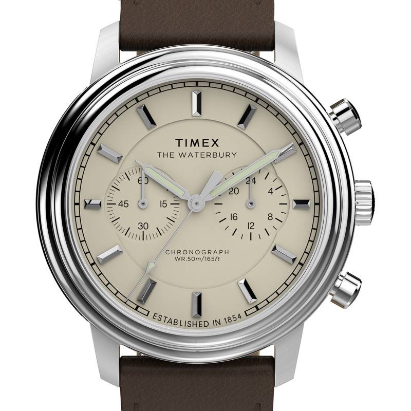 La montre Timex Waterbury Metropolitan Chronograph incarne l'essence même de l'élégance moderne avec une touche sportive. Son boîtier en acier inoxydable est soigneusement conçu en forme de tonneau, offrant une allure à la fois robuste et raffinée. Le diamètre du boîtier est de 41 mm et son épaisseur est de 11 mm, une taille parfaite pour rehausser le poignet de l'homme contemporain. Le choix du verre minéral, plat et transparent, assure une résistance accrue. Le fond de la boîte emboîté protège efficacement le précieux mécanisme intérieur tout en préservant l'esthétique globale de la montre. Équipée d'un bouton remontoir discret à droite, cette montre est un exemple de fonctionnalité intégrée dans un design intemporel.