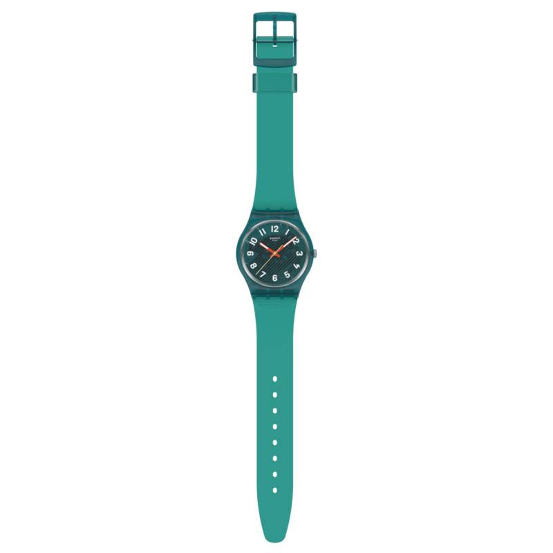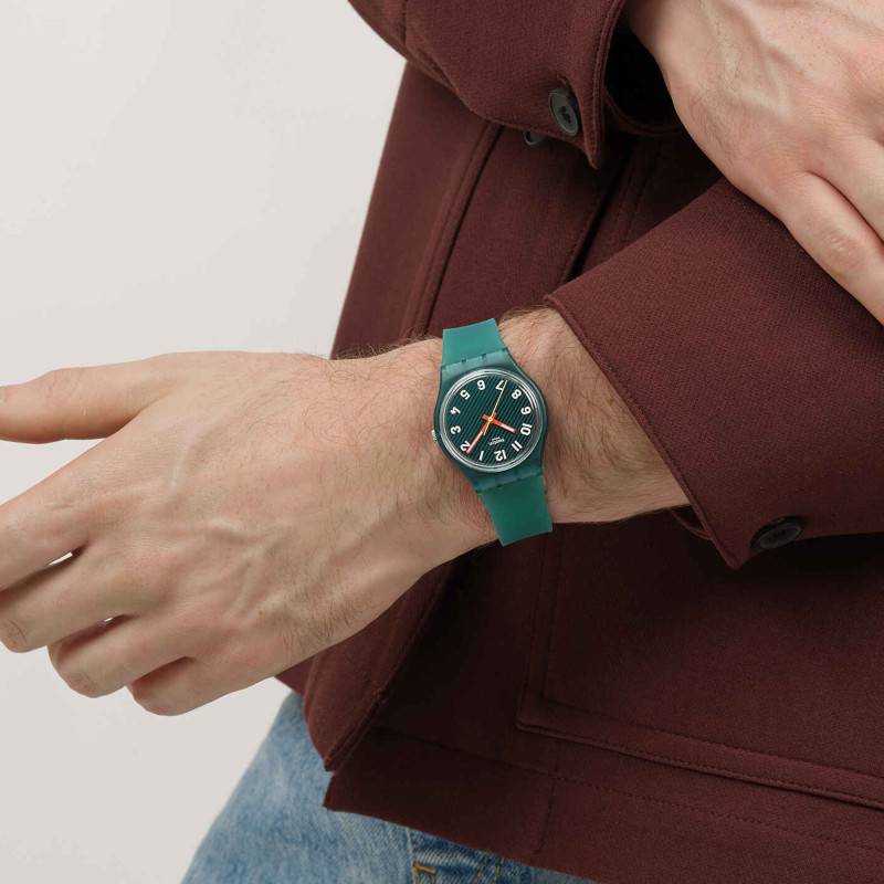 La montre Swatch Wavelengths Of Moss se démarque par son design moderne et éco-responsable. Le boîtier rond de 34 mm est construit en matériau biosourcé, reflétant l'engagement environnemental de la marque. Sa couleur verte vibrante évoque un style à la fois naturel et contemporain. Le fond de la montre est emboité, offrant une allure lisse et une intégrité structurelle. Disposant d'un unique bouton remontoir sur le côté, elle conserve une ligne épurée et fonctionnelle, facilitant le réglage de l'heure.