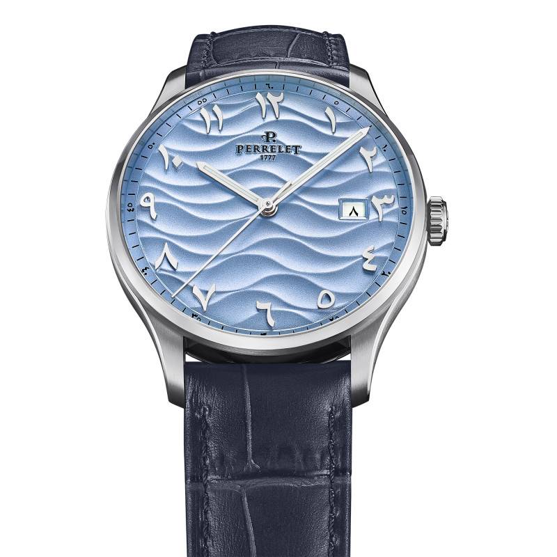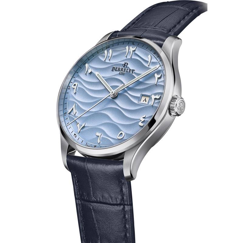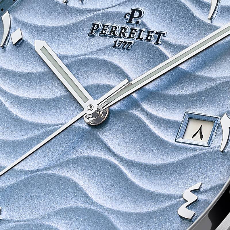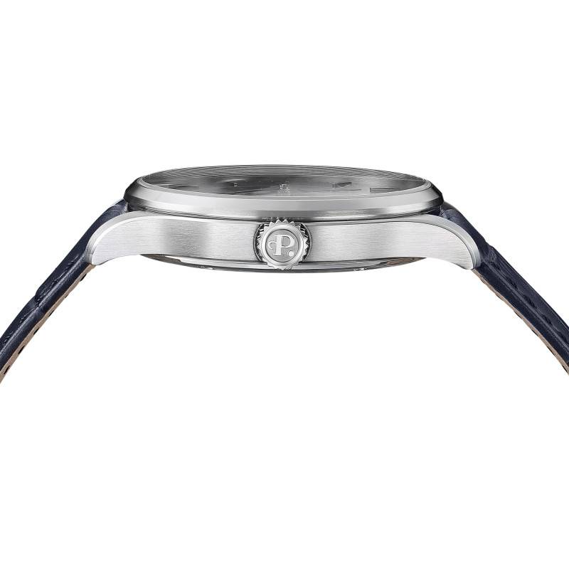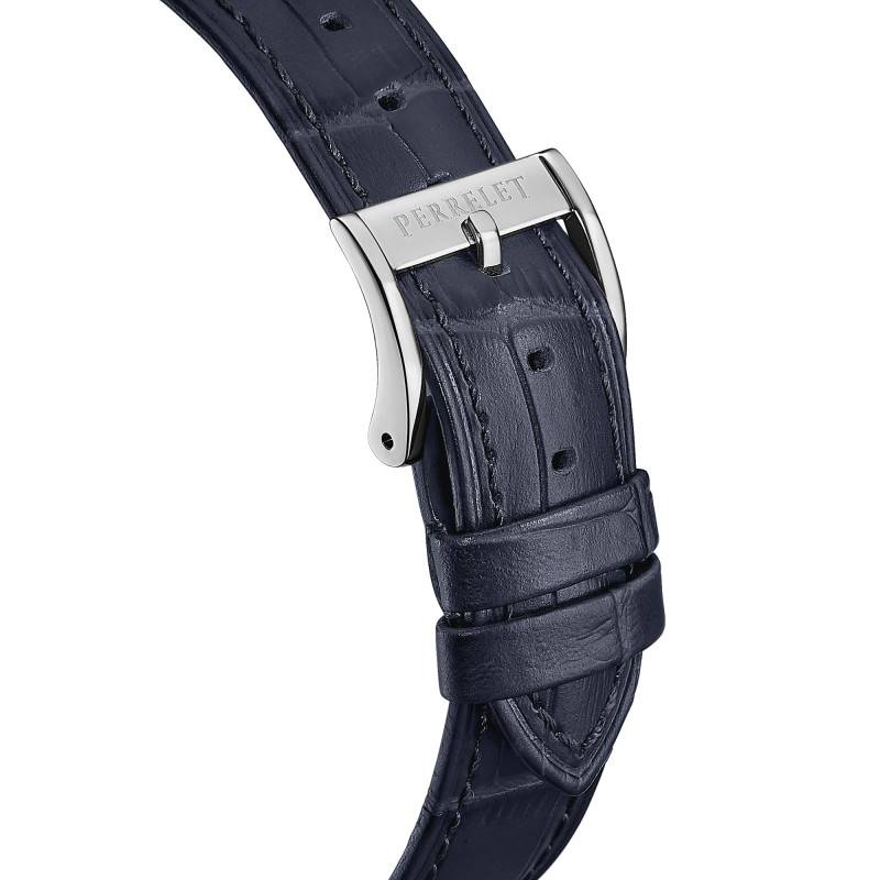 Le bracelet de cette montre Perrelet est un véritable gage de confort et de raffinement. Confectionné en cuir de veau avec un motif alligator, il se décline en couleur bleue, harmonisant parfaitement avec le cadran. Sa texture subtilement texturée apporte une dimension luxueuse au design global, tout en garantissant un port agréable au quotidien. Le bracelet se termine par une boucle ardillon classique, facilitant une mise en place et un retrait aisés.
