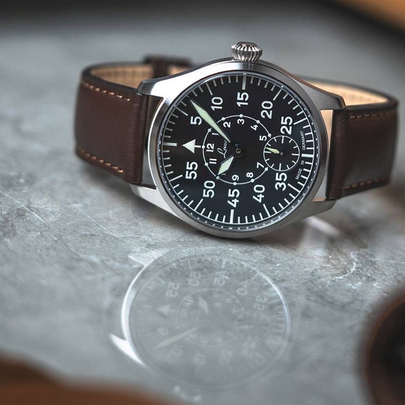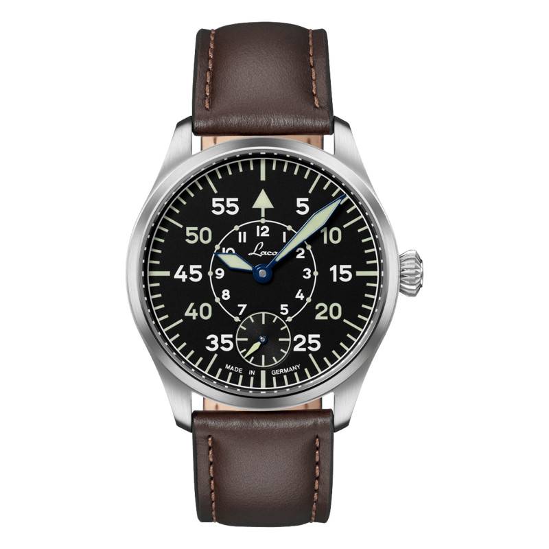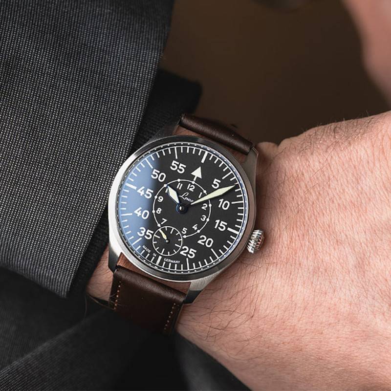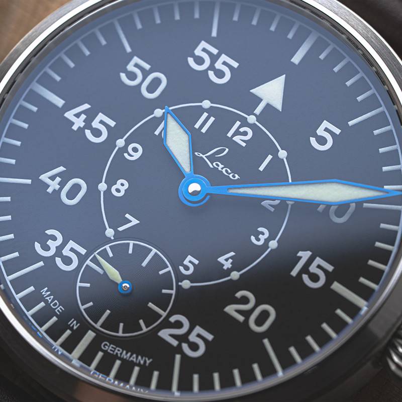 Laco est une marque d'origine allemande qui a fait son entrée dans le milieu horloger à partir des années 40 et qui est prisée pour la qualité de ses montres pour aviateurs. La qualité et la fonctionnalité optimale de ses créations lui permettent de se distinguer parmi tant d'autres. Fidèle à ses traditions, cette entreprise propose des garde-temps vintages et modernes capables de mettre en valeur en toute circonstance. Vous trouverez dans la collection Würzburg, cette splendide montre 862119.2 conçue spécialement pour la gent masculine. Elle se compose d'un boîtier de couleur argentée réalisé en acier inoxydable. Il arbore des finitions brossées et polies qui viennent rehausser son charme. De forme ronde, il mesure 42,50 mm de diamètre, 11 mm d'épaisseur et un poids de 80 gr. Ce boîtier est surmonté d'un verre saphir plat de traitement antireflet à l'intérieur qui facilite la lecture temporelle. Ce verre très résistant se charge de protéger efficacement le cadran contre les rayures et les chocs extérieurs qui surviennent au quotidien. Par ailleurs, la couronne crantée installée à 3 heures donne l'accès au réglage des heures, des minutes et du compteur. Enfin, le fond vissé muni d'un verre saphir de ce garde-temps offre une belle vue sur les rouages du mécanisme et accorde également une étanchéité de 10 ATM.