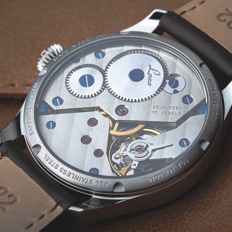 C'est un mouvement automatique qui vibre au cœur du boîtier de cette montre. De fabrication suisse, c'est exactement le calibre ETA 6498.2, de marque Laco 98, qui se charge de la fiabilité des fonctions. Composé de 17 rubis, il actionnera avec la plus grande efficacité les éléments centraux.